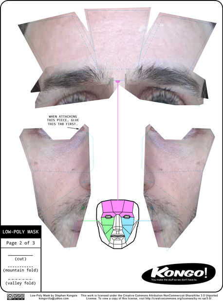 Utilizando las mismas técnicas como página 1, importar la imagen de la parte delantera de la cara. Alinee su frente para arriba con la pieza superior de la frente y utilizar la herramienta de lazo poligonal a la máscara el resto de su cara.