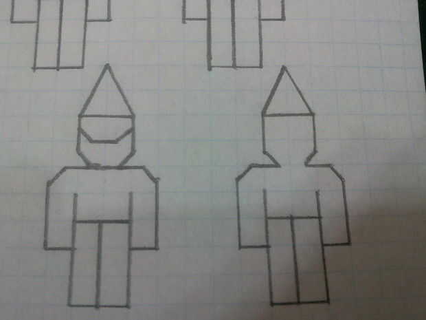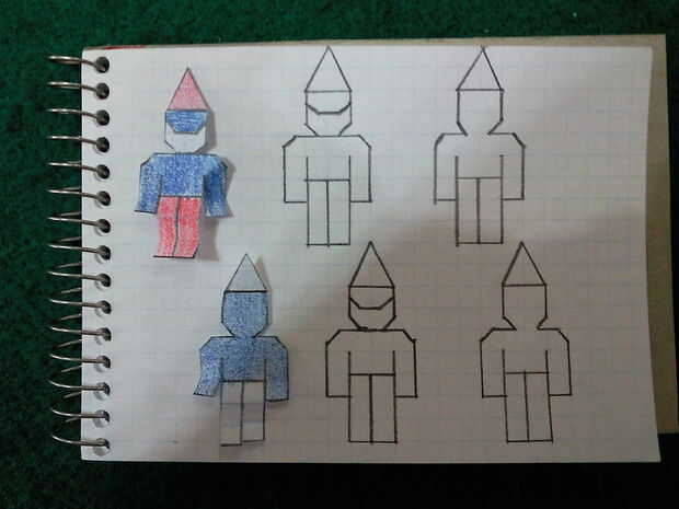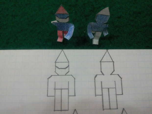 Prestar atención en los hombros (Lisa media plaza a mitad de la Plaza). Usted puede cortar hombros de mi PaperMan esta manera también.