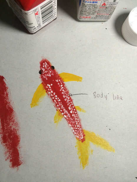 Añadir otra capa de la línea de cuerpo pero más pequeño que antes. porque seguimos la estructura de su cuerpo. hacer sólo una capa delgada, si es posible, que sea transparente. Dibuje más escalas. y usted puede mezclar algún otro color para hacer más parece agradables. no te olvides de dibujar algo en la cabeza y una línea de su aleta dorsal.