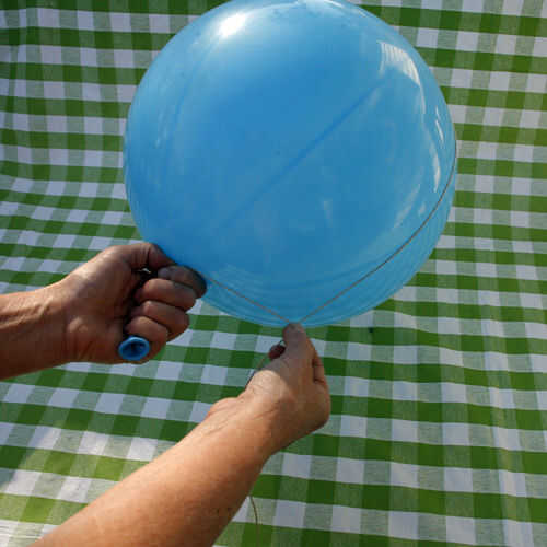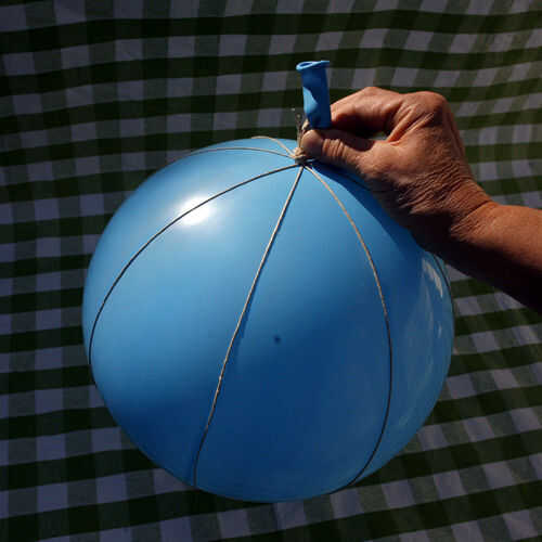 3. una vez obtener las cadenas lo suficientemente rectas (seguí las líneas en mi globo de bungee), seguir cuidadosamente soplar el globo hasta que usted consigue de una forma agradable con los cantos. Puede tomar algunos intentos, paciencia!