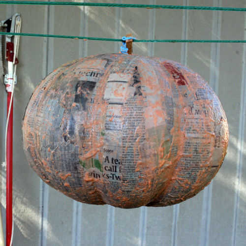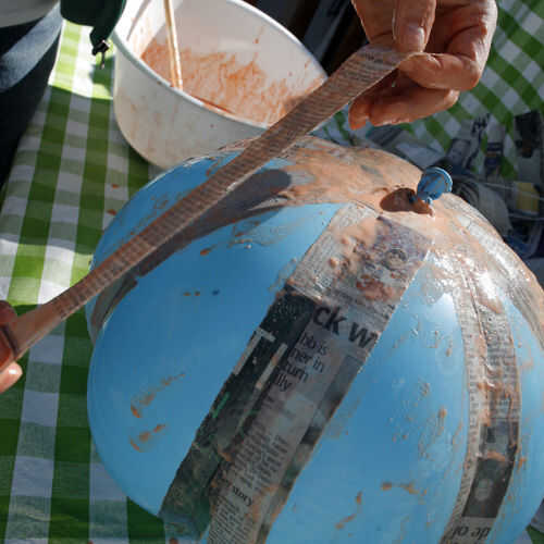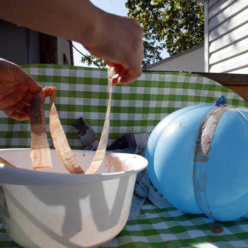 2. Asegúrese de que para conseguir el periódico completamente mojado, pero luego también Asegúrese de deshacerse de cualquier exceso de pasta tirando de la tira mojada a través de los dedos antes de aplicar al balón. Si tienes demasiada pasta en el globo puede convertir en un lío goopy rápido y toma siempre para secar.