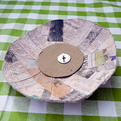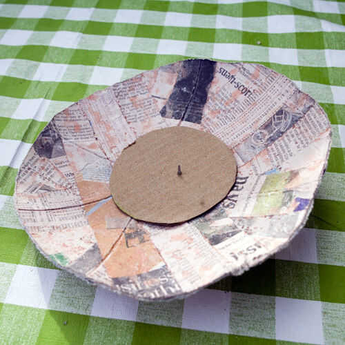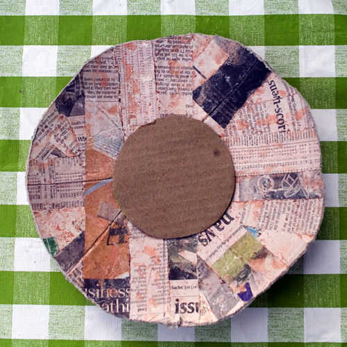 2. en primer lugar tendrá que cortar un trozo circular de cartón u otro material de papel resistente que se ajusta en la parte inferior de la parte superior. Luego pegar la cartulina en la parte inferior de la parte superior. He utilizado pegamento caliente porque es robusto, pero cada uno tiene sus preferencias de pegamento!