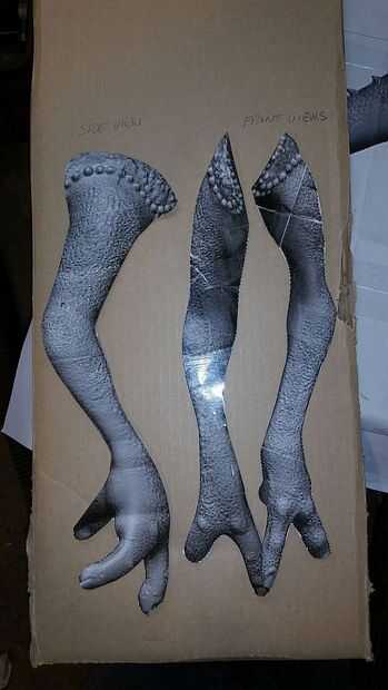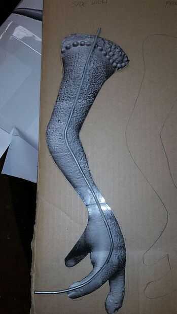 Las plantillas de brazo se realizaron en la misma forma que las piernas. Similares a las patas un pedazo de alambre calibre 9 fue instalado por el centro de la plantilla de la vista de perfil.