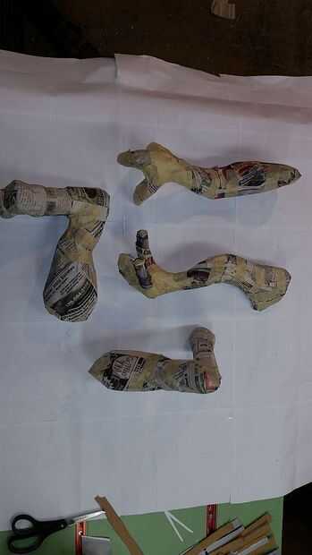 Los brazos fueron posteriormente envuelto con pequeñas tiras de cartón y luego envuelto en periódico. El cuadro también muestra las piernas que se han hecho al mismo tiempo.