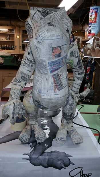 Los brazos fueron aplicados al cuerpo y recibe una capa de papel maché en las articulaciones como las patas y la cola tenía.