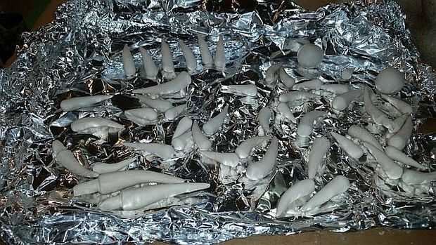 Durante los tiempos de secado periódicos, garras y picos se hicieron con Sculpey Clay.