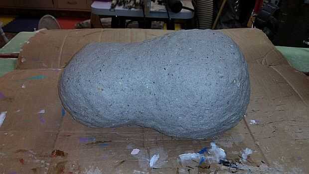La sección del torso se hizo de un shopping bag de plástico rellenos con periódico y bolsas rellenas en él. Periódico funciona bien para a granel, sin embargo, a menos que aprieta mucho tendrá los lados y ángulos muy tiesos. Tener algunas artritis en mi muñeca y pulgar, las bolsas de plástico hacen una superficie más suave con menos manipulación. Para separar las secciones grandes y pequeñas, apreté el bolso en las proporciones quería y luego poner cinta adhesiva alrededor de él para mantener la forma. Una capa de papel fue utilizada para cubrir la pieza y papel maché fue entonces envuelto alrededor de la pieza entera. Después del secado fue luego cubierto con arcilla de papel. La foto muestra la pieza con la arcilla que acaba de aplicar.