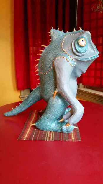 Papier Mache figura de lagarto hombre (43 / 44 paso)