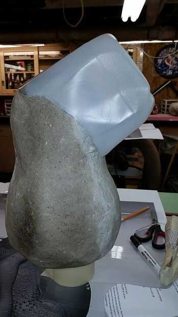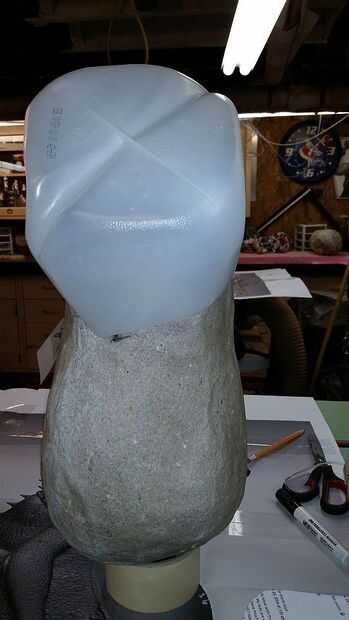Descubrí que una envase de leche de 1 galón de corte le daría la forma aproximada de la cabeza. El contenedor fue cortar con el exceso de material y luego describen para encajar la pieza del torso. La pieza de plástico de "cabeza" era entonces caliente pegado en su lugar.