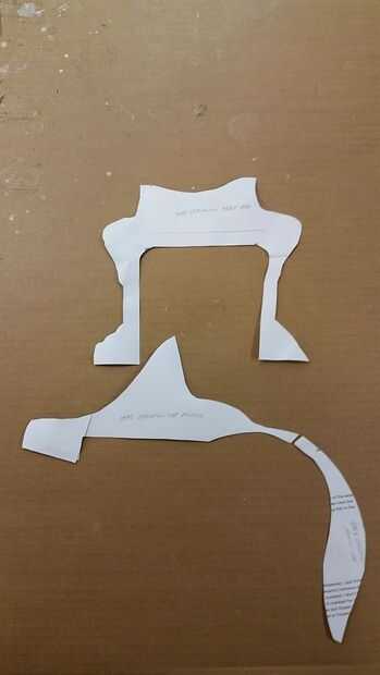 El plástico me dio un punto de partida para la cabeza, sin embargo, no quiero tener que usar capas profundas de la "arcilla" para llegar a la forma requerida ya que toma mucho tiempo de secar, usé plantillas de cartón. Las plantillas fueron hechas usando secciones en ángulo recto entre sí. Las plantillas permiten la última capa de arcilla de papel a ser posible porque cada uno proporcionó la forma requerida para esa zona. Las plantillas se toman del lado y vistas.