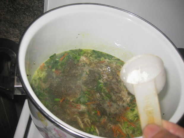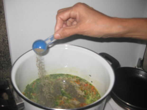 * Luego agregar las verduras, pollo, sal, pimienta y comino molido y dejar cocer durante 5 minutos.