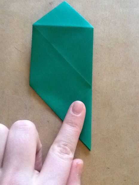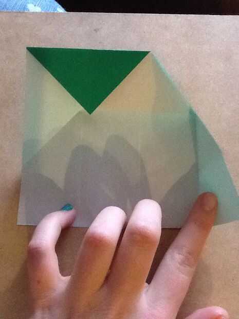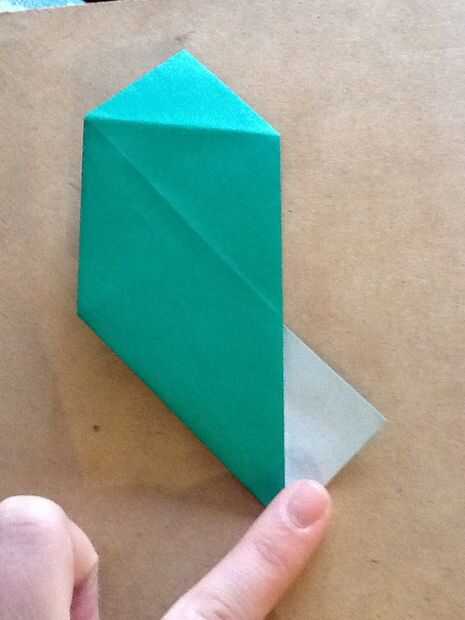 2: ahora, hacer un pequeño pliegue diagonal en la parte inferior derecha como se muestra.