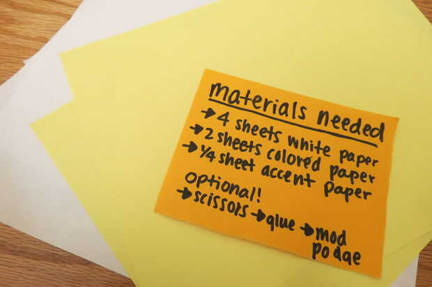 Puesto que este modelo sólo pide (realmente) 3 hojas de papel de colores, no debería ser difícil de encontrar. ¡ Sea creativo! Uso de folletos antiguos, raid copia de la oficina, etc.. Solo necesitas 3 hojas, después de todo!