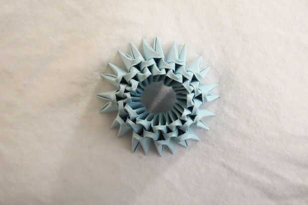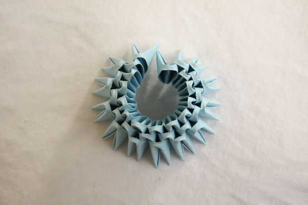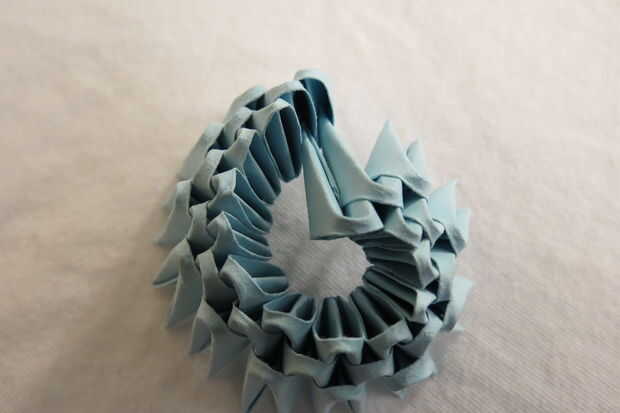 1. Crear a trillizos base 12 y enlazarlos todos juntos. Un trío de base se compone de tres unidades, donde el punto justo de una unidad se inserta en el bolsillo izquierdo de otra unidad, y el punto de que la unidad se inserta en el bolsillo izquierdo de otra unidad.