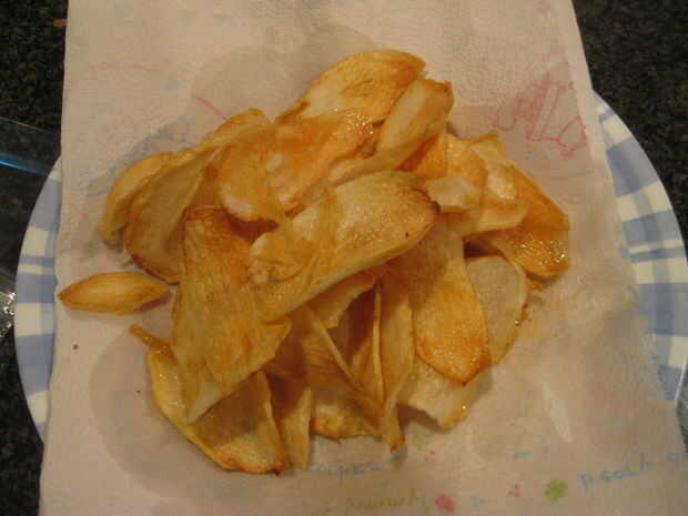 Cuchara hacia fuera con una espumadera o una bifurcación regular y colocarlos sobre papel absorbente para secar