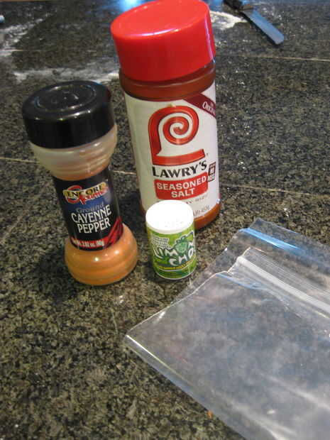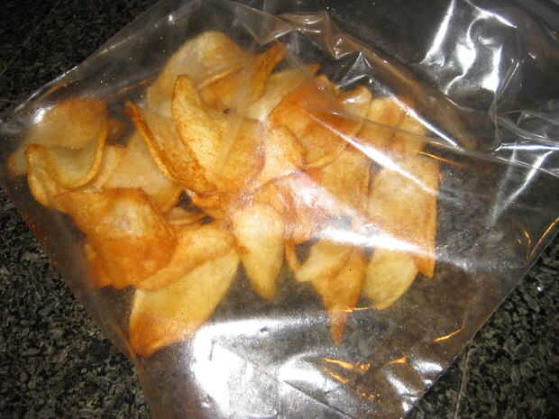 Tomar el hervidor fresco cocido fichas y ponerlos en la bolsa de ziplock. Inserte su elección de condimentos con patatas y agitar.