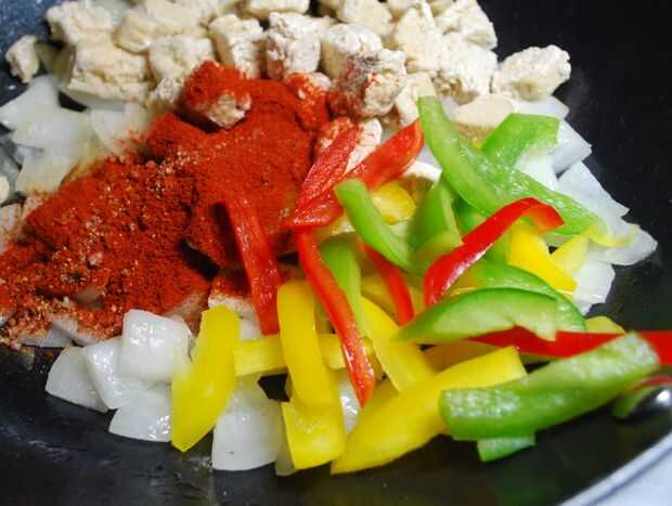 Sustituido a Quorn ofertas de pollo, que significa que una vez combinados, el tiempo de cocción es más como 15-20 minutos (hasta que se calienta el pollo falso).