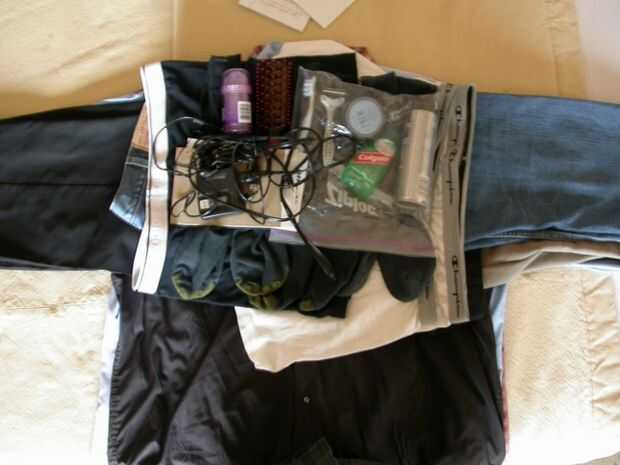 También en esta pila de agregar las otras cosas que usted necesita para su viaje. cargadores del teléfono celular, cables usb, cargador de la cámara, etc etc.. Ponga nada aquí que quieren acceso a durante el vuelo. Que va en el bolsillo exterior.