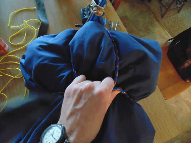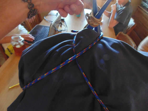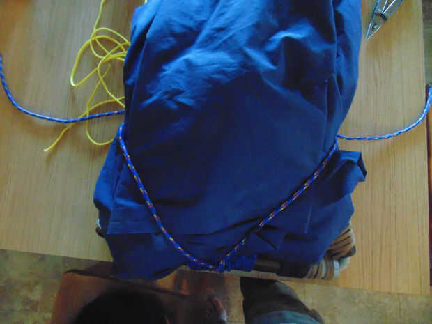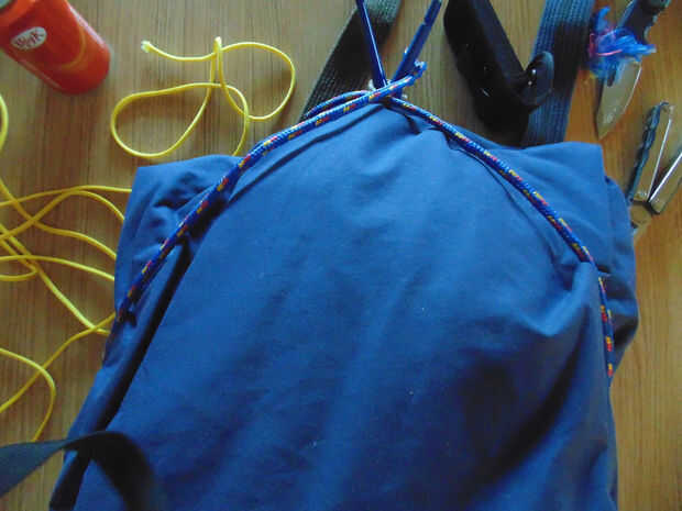 Agarrar las cuerdas donde cruzan derecha debajo de los siyahs. Tire de la solapa superior de su paquete a través de este estrecho. La tensión de las cuerdas será sostener la parte superior cercano, pero también le permite acceso al contenido del paquete, incluso cuando su en su espalda.