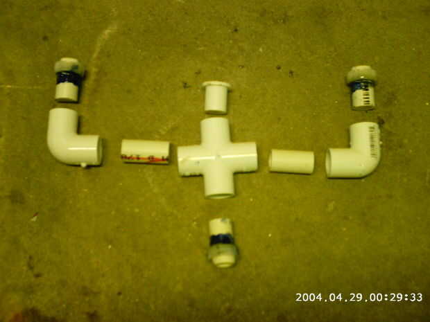 Después pase la manguera a través de la clavija (o cap). Debe salir de la parte inferior de la Cruz, a través de la clavija y la tapa y sobresalga lo suficiente como para tocar el fondo de la botella de agua en la parte inferior.