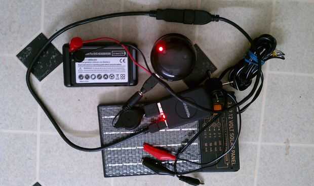 Aquí es una solución para un paquete de batería externa que se cargar / ejecutar cualquier dispositivo USB de pilas o Cargador Solar