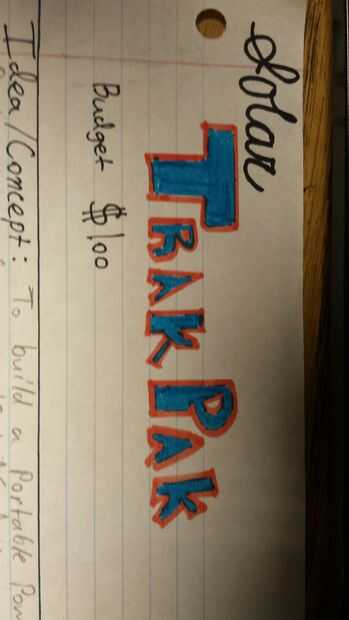 El Trak Pak un diseño por venir en un futuro cercano. El concepto de idea es tener un portátil 12v CC y 120 v Ac junto con una alimentación del usb 5v dc. El concepto es utilizar paneles solares, un banco de baterías, un controlador de carga solar y algunas otras piezas eléctricas para juntar un paquete de energía Solar.