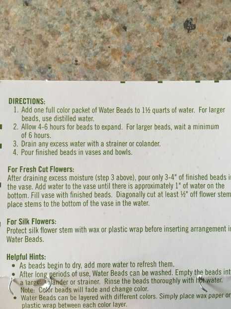 El paquete de hielo real está hecho de granos de agua y alcohol de frotamiento. Para hacer las cuentas de agua, siga las instrucciones en el paquete. Pero, en lugar de solo agua, alcohol para fricciones 1/3 y 2/3 agua. Esto le ayudará a hacer las cuentas de agua fría pero blandita! En la foto un ejemplo de lo que fueron mis instrucciones para el grano de agua. Deje los granos de agua de 4 a 6 horas o hasta completamente absorben toda el agua. Quizá deba escurrir luego, sólo asegúrese de que toda el agua está fuera de la taza antes de ir al siguiente paso.