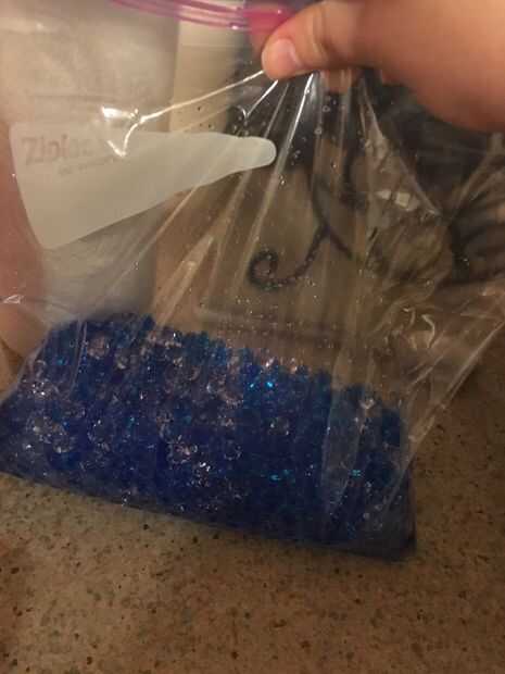 Simplemente drene el acceso y poner todos los granos de agua en una bolsa de ziplock de congelador.