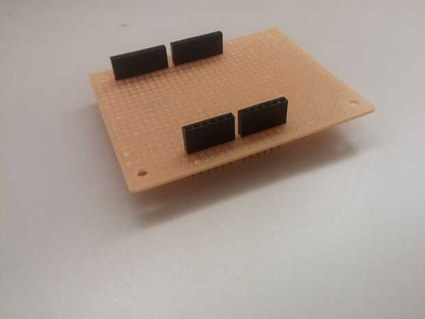 2. Encontrar donde los headers apilables deben pasar a través de la Junta de perf que acumula en las cabeceras de pines de Arduino. El esquema completo para asegurarse de que usted tiene acceso a todos los pines necesarios, como el escudo de bricolaje no llega con suficiente encabezados de referencia.