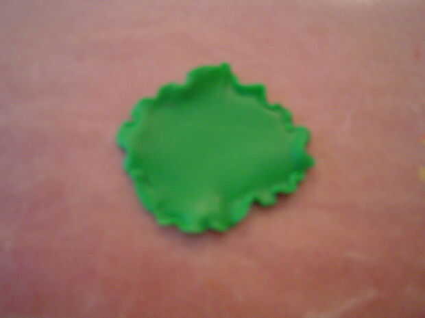 La lechuga es un deber-tener para una hamburguesa del veggie! Tienen una pequeña bola de arcilla verde de la lechuga. Las instrucciones para mezclar la arcilla verde se encuentra en la guía de color en el paso uno. Esto va a sonar extraño tan atentamente. Pulse en la bola pequeña de barro con el rodillo y los bordes se agrietarán. La arcilla hacia fuera fino del rodillo y las grietas se extenderán hacia fuera se muestra en la tercera foto. Sí, iba a pasar, da el detalle de la lechuga. Una vez más, el tiempo para el detalle de palillo de dientes! Utilice el palillo de dientes para prensar los bordes de la lechuga alrededor de todo el camino. Y tienes lechuga!