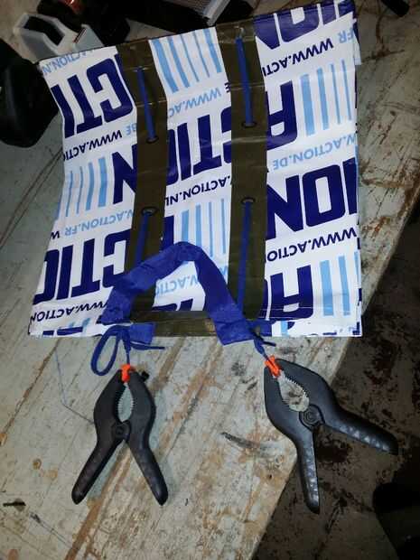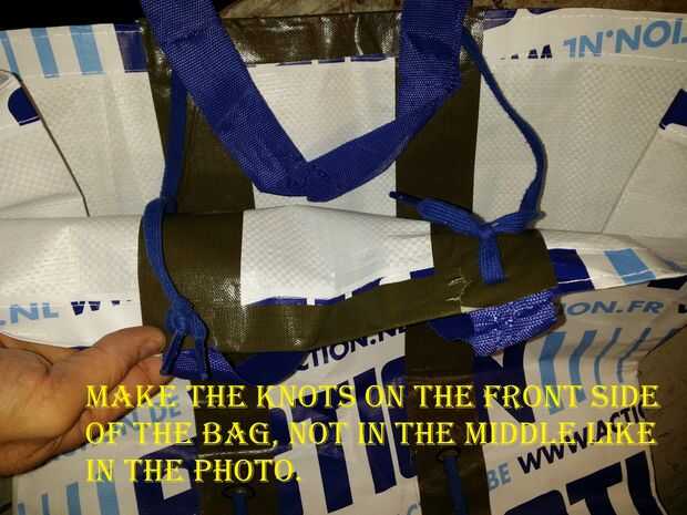 P.S: he hecho un error aquí en la primera foto, ató los nudos en el medio, ya a consecuencia de ello, no podía cerrar la bolsa...