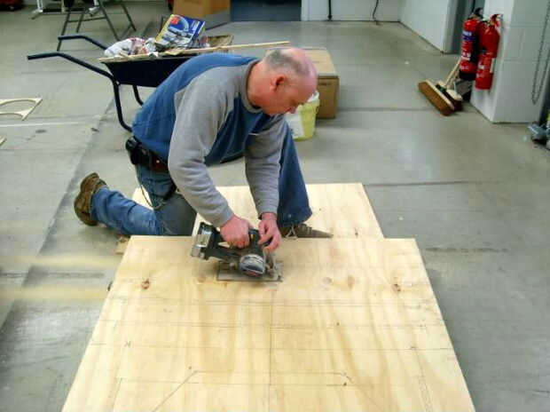 Empezar por cortar en este orden; si comienzas con los cortes largos rectos, reducirá las secciones de la madera contrachapada a un tamaño más manejable: