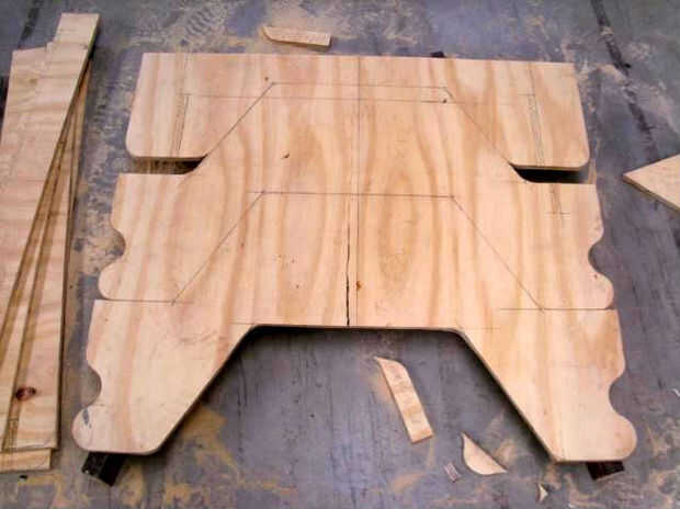 Cuando éstos se realizan puede empezar a cortar todas la curvas de detalle para el centro y extremos de la mesa de apoyo en el resto de la hoja; es más fácil hacerlo ahora cortaron estos componentes de la hoja.
