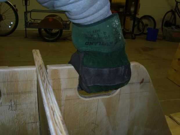 He utilizado una sierra de diámetro 2 pulgadas y una sierra de calar para cortar los puños de la mano.