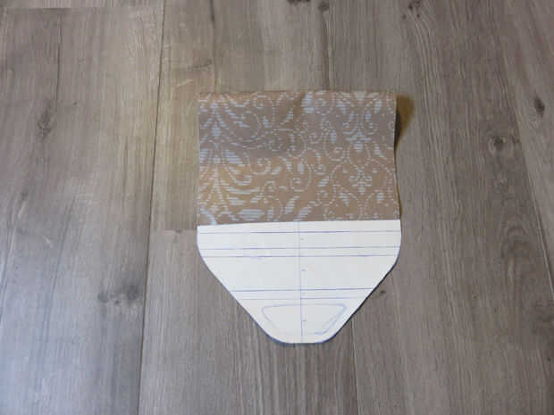 Corta el mantel con el cúter. Asegúrese de que la pieza de tela es suficiente. La parte extra va a ser la tapa de la bolsa.