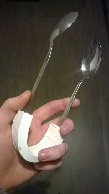 Esta herramienta de cocina le ayudará a ahorrar espacio en sus cajones. En vez de comprar un completo conjunto de pinzas de cocina que se pueden usar cucharas o tenedores que ya tienes en tu cocina y usarlos como pinzas.