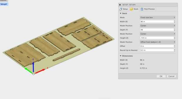 Definir el tamaño a 48 X 96 X.725 (se debe modificar este valor para el grosor exacto de su stock)