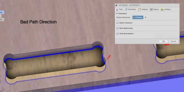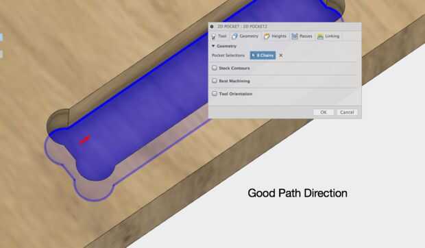 Asegúrese de que tener el bolsillo definido en la "dirección correcta" ver las imágenes. Si el bolsillo está en la dirección equivocada será el azul fuera como la flecha, para cambiar la dirección hacer clic en la flecha roja.