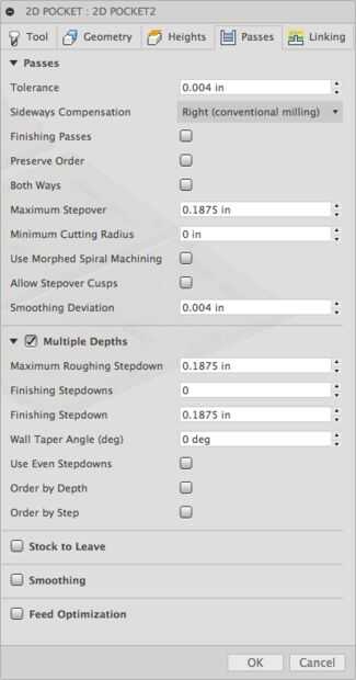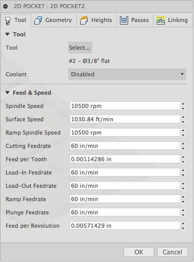 Establecido el paso máximo a mitad del diámetro del cortador (.1875 aquí)