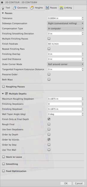 Establecido el paso máximo a mitad del diámetro del cortador (.1875 aquí)