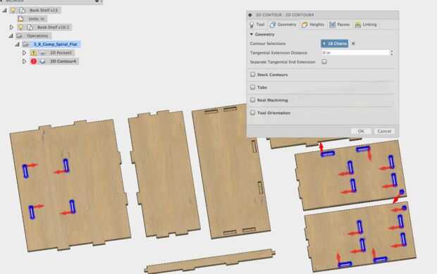 Ahora cortamos los bolsillos a través. Usted podría utilizar un bolsillo aquí o un contorno. Utilicé un contorno, pero si estaba usando una herramienta más pequeña sería bueno utilizar un bolsillo, ya que limpiar todo el material y no dejar un pequeño trozo en el medio