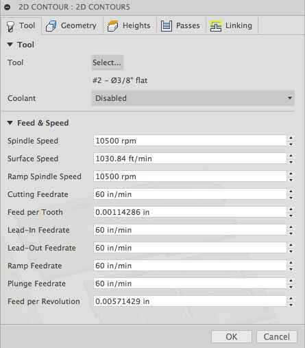 Establecido el paso máximo a mitad del diámetro del cortador (.1875 aquí)