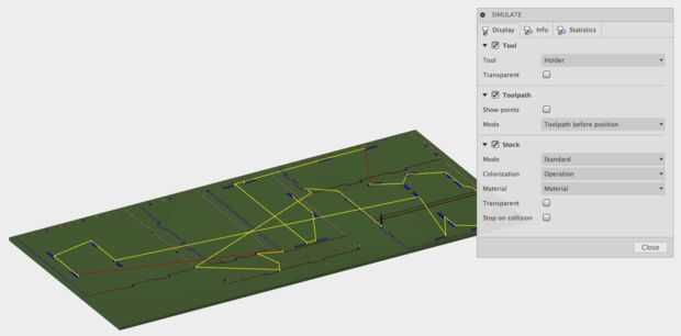 Simulación de trayectorias de la herramienta es una característica realmente agradable. He encontrado muchos errores en las configuraciones de mi mirando el resultado después de hacer una simulación. Recomiendo hacer esto cada vez antes de publicar su código de g.