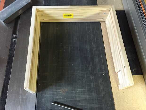 Llenar agujeros del clavo de los huecos con masilla para madera y la arena después de que se seque. Si desea que el cuadro de la mancha, ahora es un buen momento para hacer este montaje.