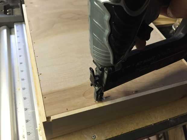Cómo usted los laterales 1001 y 1003 al panel frontal 1002 está hasta usted, pero opté por usar los agujeros de bolsada con un Kreg jig. Después de instalar 3 piezas juntas que enarenó ligeramente para llegar a todo nivelan y cuadrados y luego cortan el panel base de 1010. He utilizado madera contrachapada luan sólo porque lo tenía. Afeitarse los bordes del panel para caber cómodamente dentro de las ranuras del armazón 1001, 1002 y 1003 y fijarlo con madera clavos pegamento y brad.