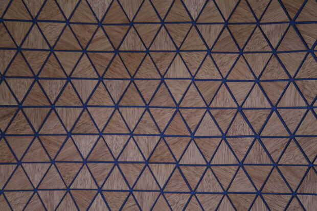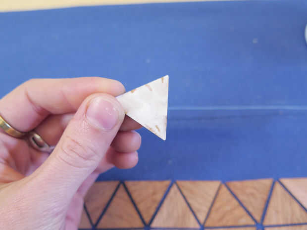 Si te sientes particularmente ambicioso, pegar los triángulos de chapa de madera sobre la tela en un patrón de teselados. Asegúrese de aplicar el pegamento uniformemente en toda la superficie. Quizá quieras hacerte un audio libro o serie de televisión para ver o escuchar mientras esta, lleva un tiempo.