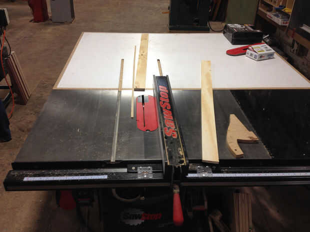 Utilice una tabla o una sierra circular para tamaño de la mesa de 16 "x 24". Este es un tamaño bastante estándar tabla de extremo, pero no tienes que estar limitado por la Convención. Si usted recibe cualquier menor 16", puede sufrir la estabilidad de la tabla. También podría adaptar este diseño a una tapa ovalada o forma libre. Cortar dos tiras de madera contrachapada de 2-1/2" de ancho por 24" largo para hacer la subestructura. Hice esta tabla de madera contrachapada de 1/2", pero en retrospectiva, sería más robusto si fue hecho con caldo de 5/8" o 3/4".