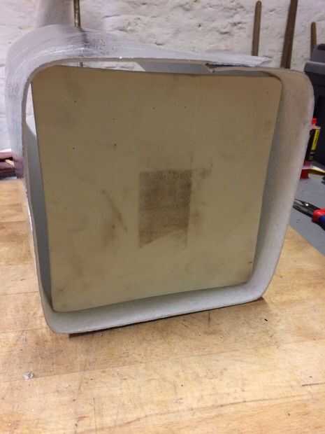 Cortar un cuadrado de la espuma que es exactamente el tamaño del interior de mi anterior cubo abierto.
