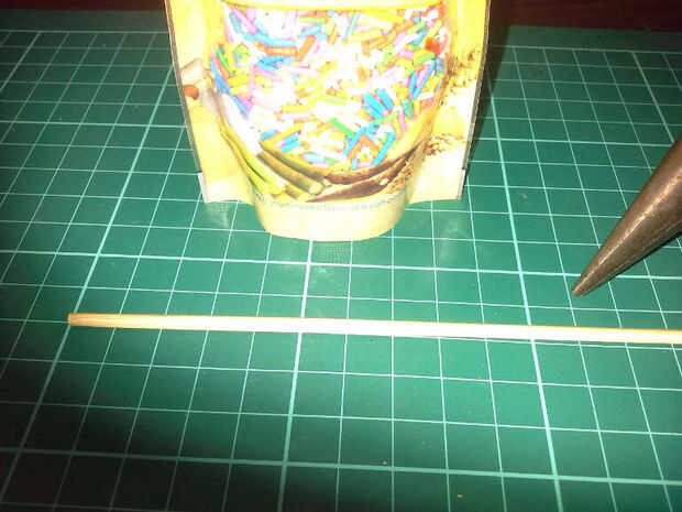 Corte el tercer palo de cualquier tamaño, preferiblemente aproximadamente del mismo tamaño del paquete.