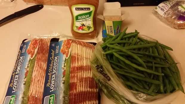 tocino envuelto judías verdes. Muy fácil de hacer y super sencillo. Por ello, judías verdes frescas divina, que incluso el más ardiente devorador de carne podrá disfrutar.Paso 1: Aquí está lo que usted necesita De judías verdes frescas, tengo demasia